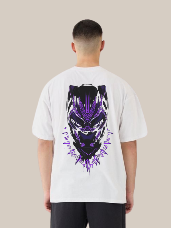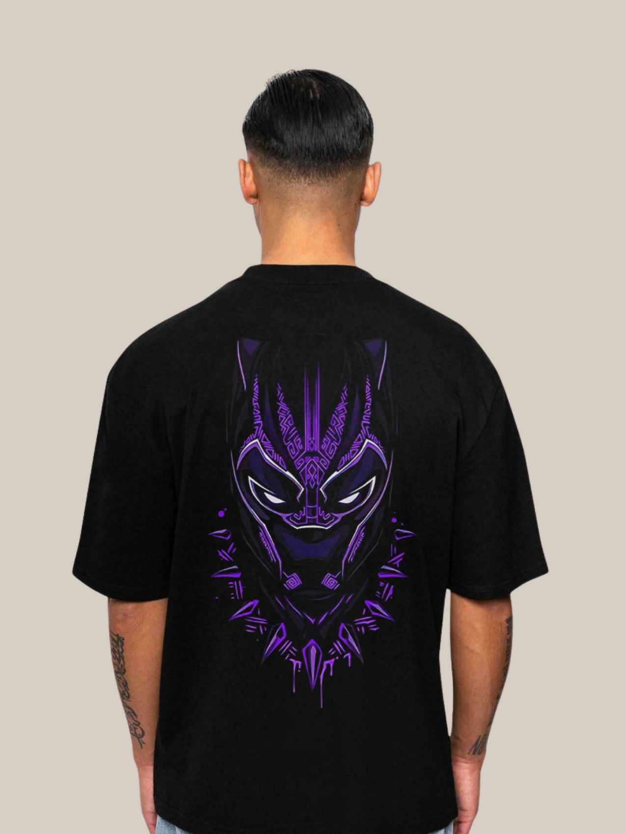Unleash your inner hero with this oversized Black Panther-inspired tee, featuring a bold purple tribal design that stands out day and night.