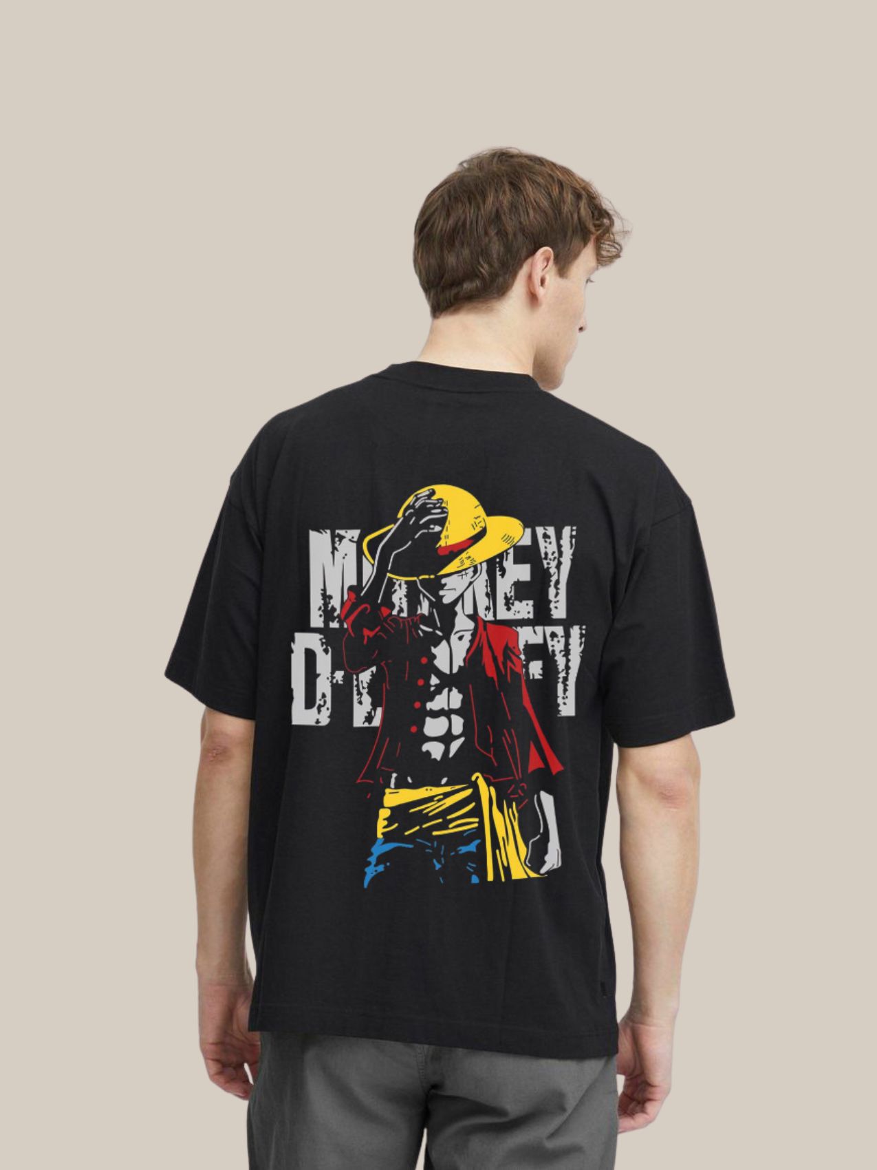 Set sail with style in the Monkey D. Luffy Oversized Tee – the perfect pick for die-hard anime fans and streetwear lovers. Featuring a striking back print of Luffy tipping his straw hat in full color, this black t-shirt pays homage to the iconic captain of the Straw Hat Pirates.